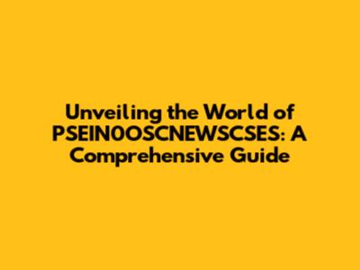 Unveiling The World Of PSEIN0OSCNEWSCSES: A Comprehensive Guide