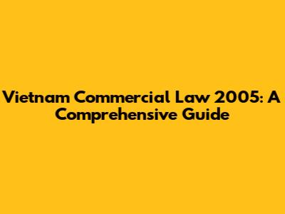 Vietnam Commercial Law 2005: A Comprehensive Guide
